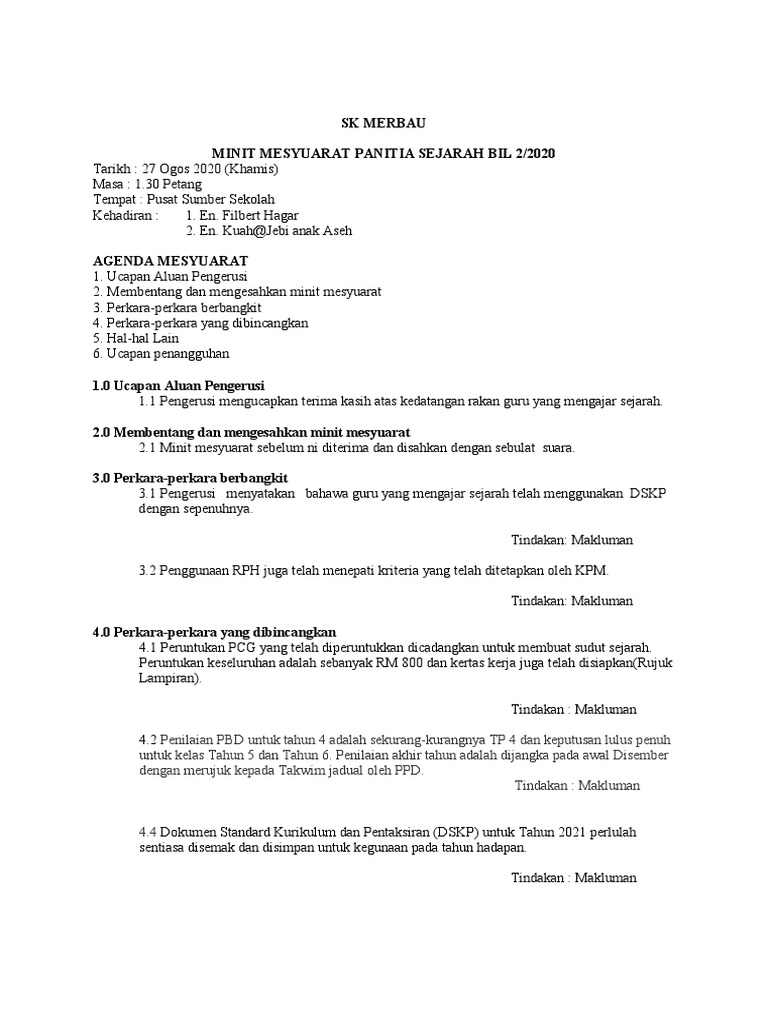 Minit Mesyuarat Panitia Sejarah 2 Pdf